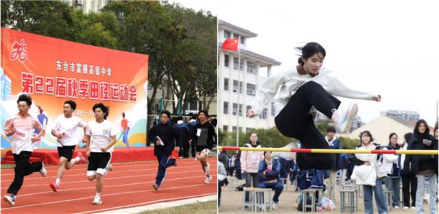 竞技赛场,激情燃烧,勇敢拼搏,超越自我。11月18—19日,东台市富腾高级中学第22届秋季田径运动会如期举行,全校2000多名师生全员参与,300多名运动员参加了100m、200m、跳高、跳远等8个项目的激烈角逐,重新奠定了16个学校运动项目新记录,整个比赛有序推进,圆满完成预设比赛议程,取得了令人瞩目的成绩。